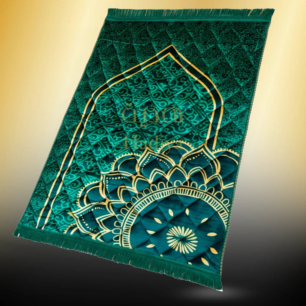 Sejadah Gold Series dibuat khas untuk mereka yang inginkan keselesaan dan sokongan dalam setiap solat. Dengan saiz 80 × 120 cm dan ketebalan 1 inci, ia terasa lembut namun kukuh di bawah kaki anda. Sejadah ini diperbuat daripada fabrik berkilat yang sangat lembut dengan isian semula jadi bulu dan kapas, memberikan sentuhan yang selesa sambil mengekalkan ketahanan. Beratnya kira-kira 1.2 hingga 1.3 kg, ia kukuh tetapi masih mudah untuk dialihkan. Sejadah ini dihiasi dengan renda dan paip di keempat-empat sisi dan dilengkapi dengan bahagian belakang kalis air, menjadikannya selamat dan tahan lama. Sesuai sebagai sejadah mewah untuk kegunaan harian atau sebagai hadiah yang istimewa.