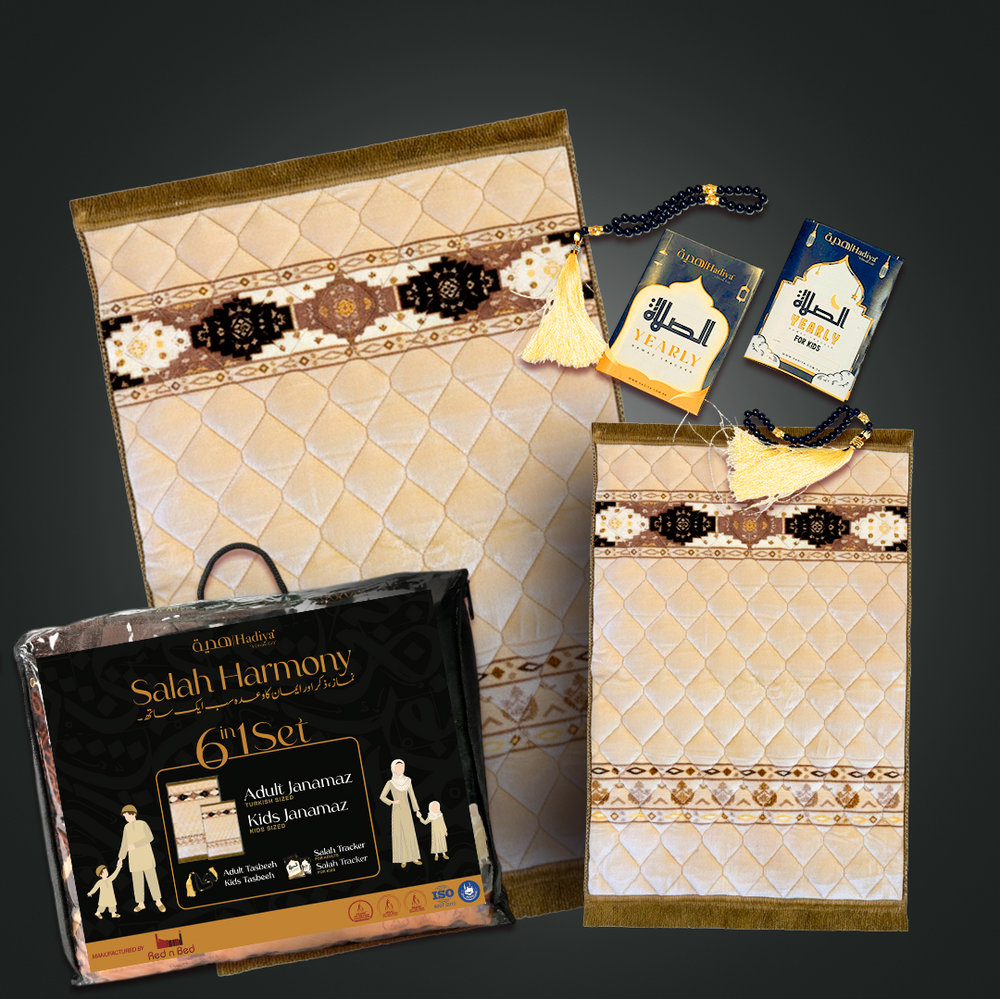 Temui set hadiah solat lengkap pertama yang eksklusif dari Hadiya, direka untuk menyatukan keluarga dalam beribadah. Dibungkus indah dalam pembungkusan premium, set ini adalah gabungan sempurna kerohanian, keanggunan, dan kebersamaan — dicipta dengan penuh kasih sayang di Karachi oleh RednBed, nama yang dipercayai dalam tikar solat mewah.